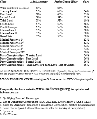 Southwest Dressage Championship 2026 Qualifying Percentages